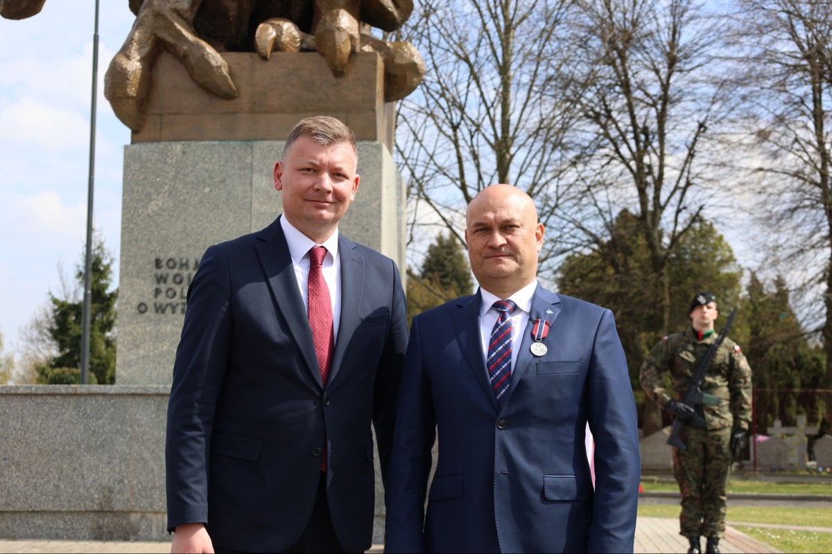 W trakcie wydarzenia minister Michał Syska odznaczył pana Rafała Gronicza, burmistrza Zgorzelca, medalem Pro Patria.